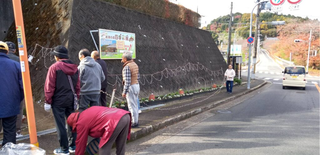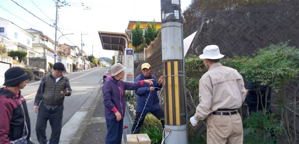 南青葉台の玄関を彩るふれあい花壇では、クリスマスにむけてイルミネーションが設置されました!