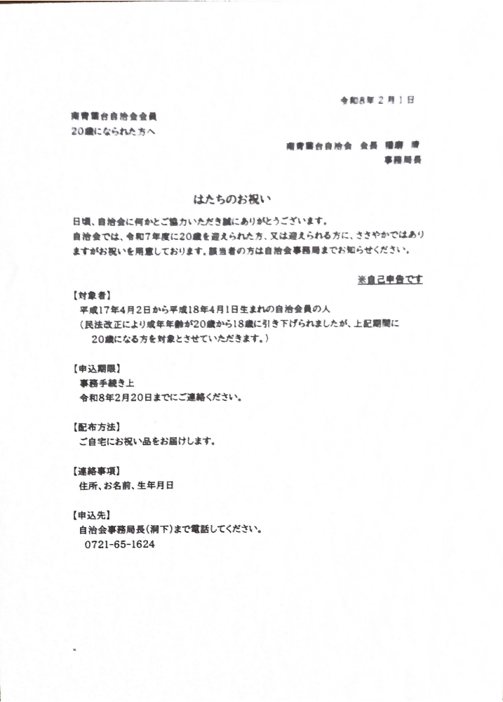 【自治会からのお知らせ】